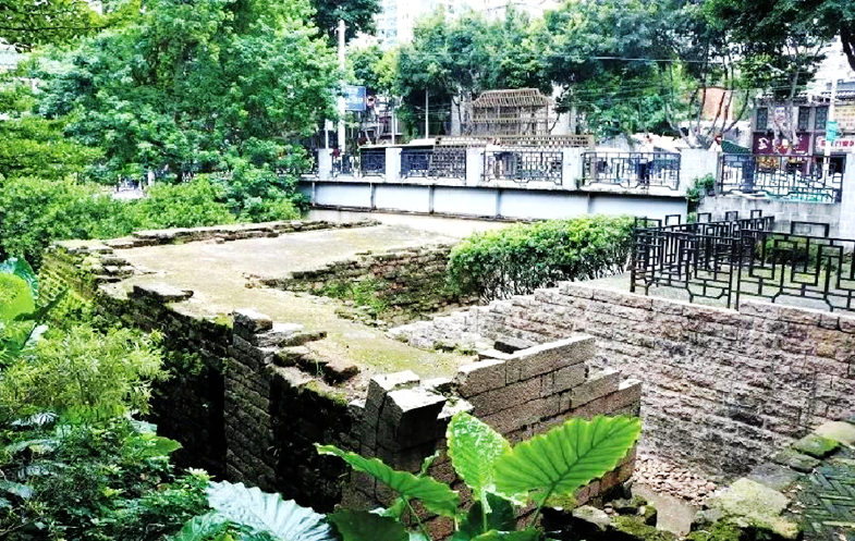 建筑结构:瓮城为古代城市的主要防御设施之一,是为加强城堡或关隘的防守在城门外修建的半圆形或方形的护门小城,属于中国古代城市城墙的一部分。该瓮城切面呈 H 形,南北长 50 余米,东西宽 18 米,中部被埋在中山七路路底,南段露于地面,北段紧依民居。