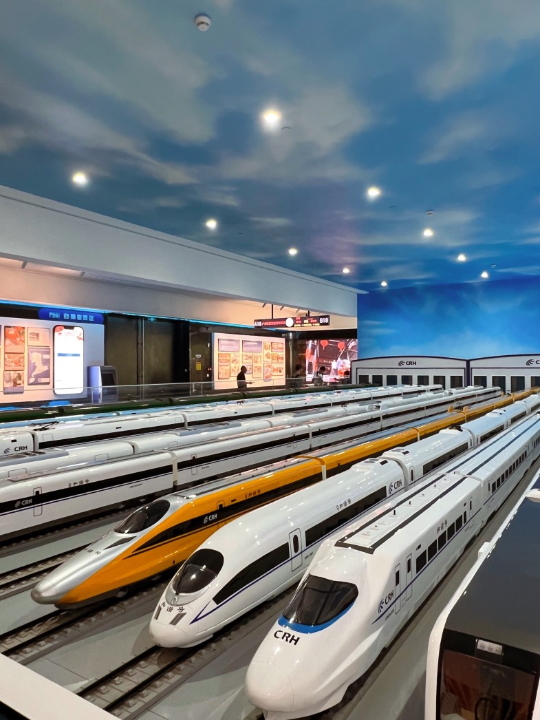 “高铁时代”展厅主要展示粤湘琼高铁迅猛发展,深刻改变交通发展格局,提升人们美好出行品质,搭建“一带一路”国际货运大通道的巨大进程。从“速度之变”“路网之变”“装备之变”“服务之变”中感受铁路跨入新时代。