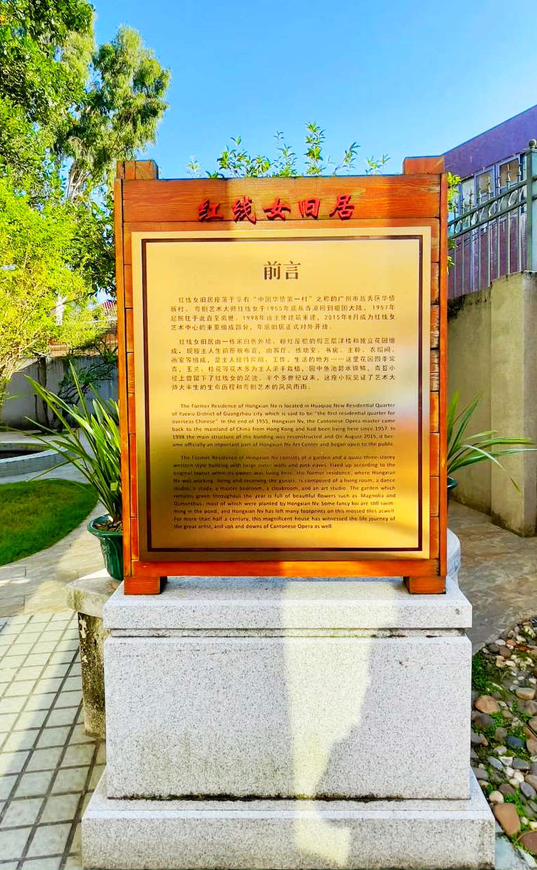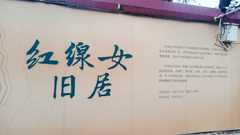 红线女旧居座落于享有“中国华侨第一村”之称的广州市越秀区华侨新村。粤剧艺术大师红线女于1955年底从香港回到祖国大陆,1957年起居住于此直至离世。1998年该主体建筑重建,2015年8月成为红线女艺术中心的重要组成部分,年底旧居正式对外开放。