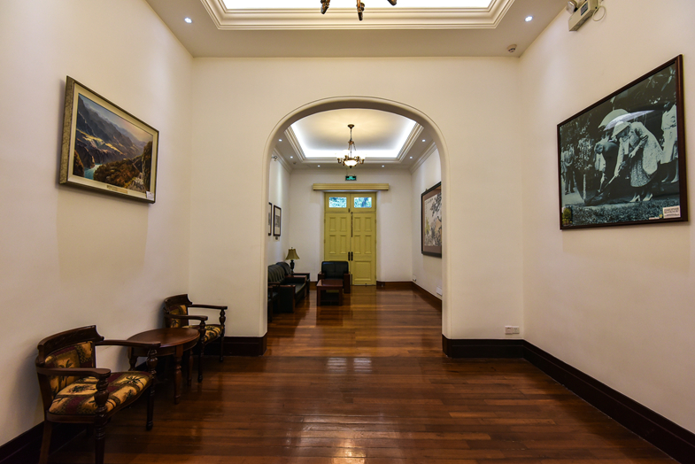 博物馆除了收藏了改革开放以来广东的外事礼品以及重要外事活动的图片外,还特意利用旋转楼梯的空间展示了十多幅百年前的沙面老照片,其中有一幅照片记录下百年前洋务翻译拖着长辫身穿大褂的身影。“这应该是清末民初的照片。”刘璐说,这幅悬挂在二楼大厅的老照片,不但完整地反映了当年沙面西桥景色,而且可以看到当时行走在英法领事区的洋务翻译依然保留清装打扮。