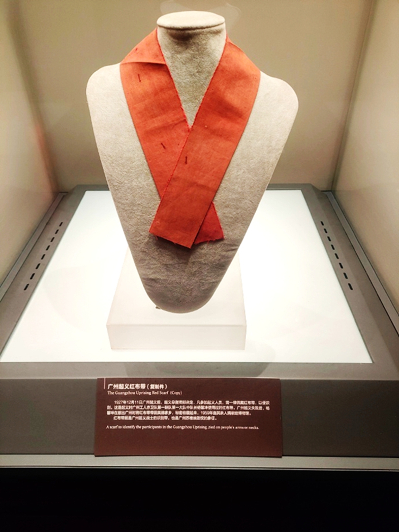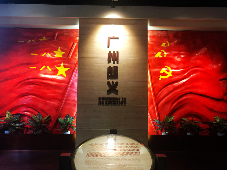 《广州起义》分为“风云突变”“起义决策”“羊城风暴”“红旗不倒”4个部分。陈列根据不同内容配合使用不同色调渲染展览气氛,多用青色、灰色,凸显起义的凝重感。