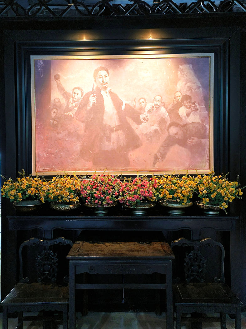 “三·二九”起义指挥部旧址纪念馆大屋内摆放着的石狮,布置有三个展厅,分别以“走进辛亥”、“碧血黄花”、“浩气长存”为主题进行展览。除此以外,还有前厅、互动多媒体室和临展厅等。
