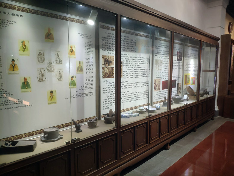 传统制药工具展厅:陈列着各式各样传统的制药工具,从研磨药材的石臼、捣药的杵棒,到煎药的砂锅、制药的模具等,每一件工具都凝聚着古代中医药人的智慧。它们见证了传统中药制作从药材处理到成品加工的全过程,是中医药工艺传承的实物见证。