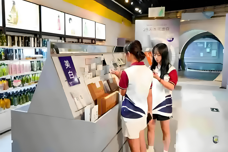 化妆品示范体验区:在这里可以免费体验头皮健康检测、皮肤健康检测等服务,还能试穿古代服饰,感受古代美容化妆的魅力。