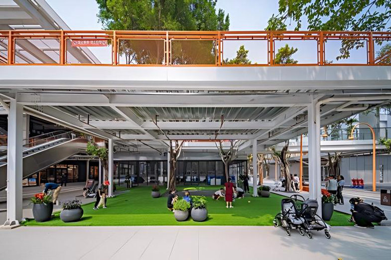 双首层+连廊系统:运货隧道改造成“时空隧道”高空连廊,实现“人在空中走,车在地面流”。