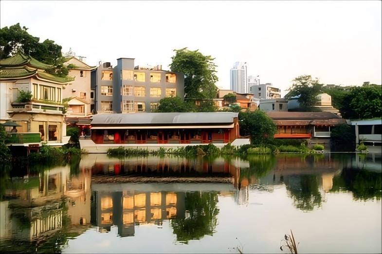 泮塘五约,拥有900余年历史底蕴,仍保留清代时期典型朴素的乡土聚落风貌特征和完整格局。2016年,泮塘五约微改造项目被列为全国老旧小区改造试点之一,该项目占地面积约3.4万平方米,泮塘五约有房屋165栋。现存五约亭、李氏宗祠(敦本堂)、皞遐书舍、三官庙等历史建筑。