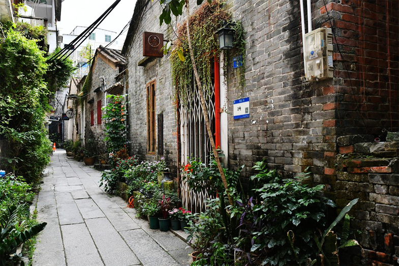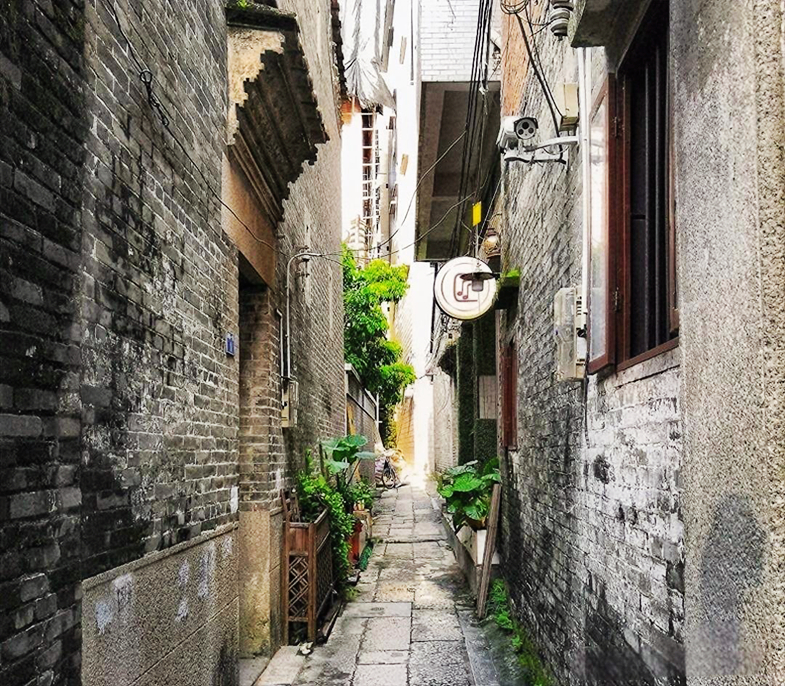 小洲村东北方向通往珠江后航道,古村区域四面环水且内部也水网密布,河涌是小洲村落组团的自然分界,水乡村落建筑群天然地被水网系统划分成北部、西部和南部三大组团。