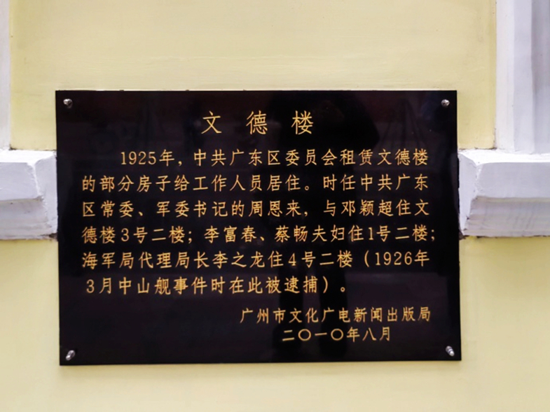 1925年,中共广东区执行委员会租赁文德楼部分房子给周恩来、邓颖超、李富春、蔡畅等共产党人居住,其中周恩来、邓颖超就住在文德楼3号2楼。文德楼是周恩来与邓颖超的新婚居所,见证了两位革命先驱在广州携手度过的时光。岁月流转,百年后的今天,文德楼3号2楼以它古朴而静谧的面貌,向世人展示了那段被岁月尘封的历史。