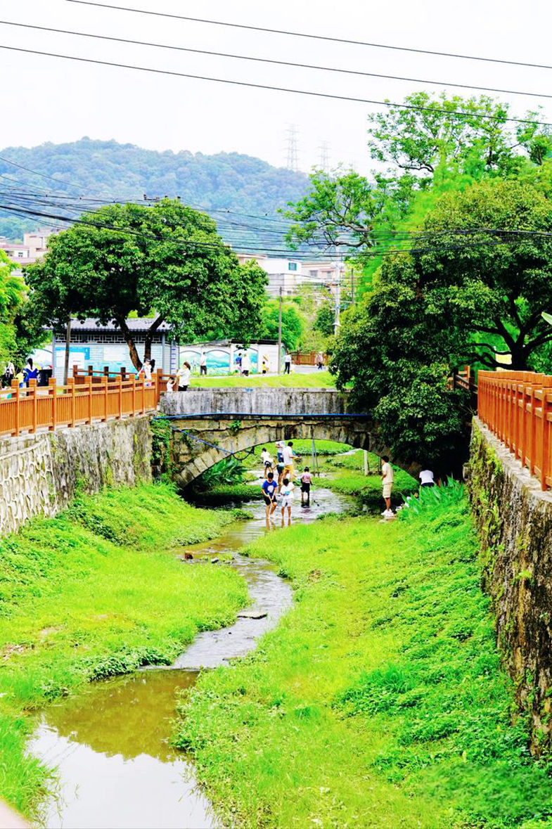 悦禾公园流溪栈道:沿着栈道漫步,两边是青翠的草地,远处的帽峰山若隐若现,宛如一幅水墨画卷。