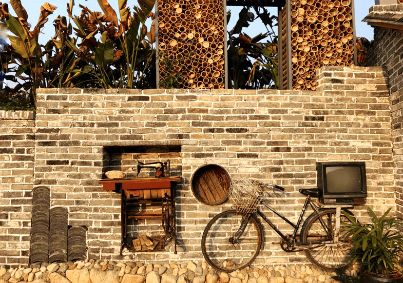 工匠文化:罗洞工匠小镇位于从化区江埔街南部凤凰山下,地势平坦开阔,村民以种植蔬果为生。这里自古以来便是远近闻名的木匠村,村民以烧砖瓦、制作砧板、桌椅、板凳等木工制品为生。小镇的设计中保留了大片麦田,木栈桥穿过麦田,老式的砖墙嵌入八九十年代的电视、洗衣机、自行车,形成了一面年代记忆的文化墙。