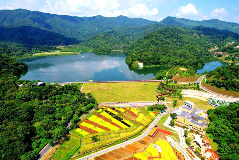 万亩良田:春季油菜花海、夏季稻浪翻滚、秋季稻穗金黄,田园小火车穿梭其间。
