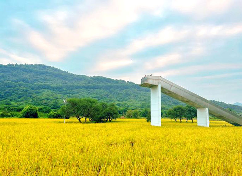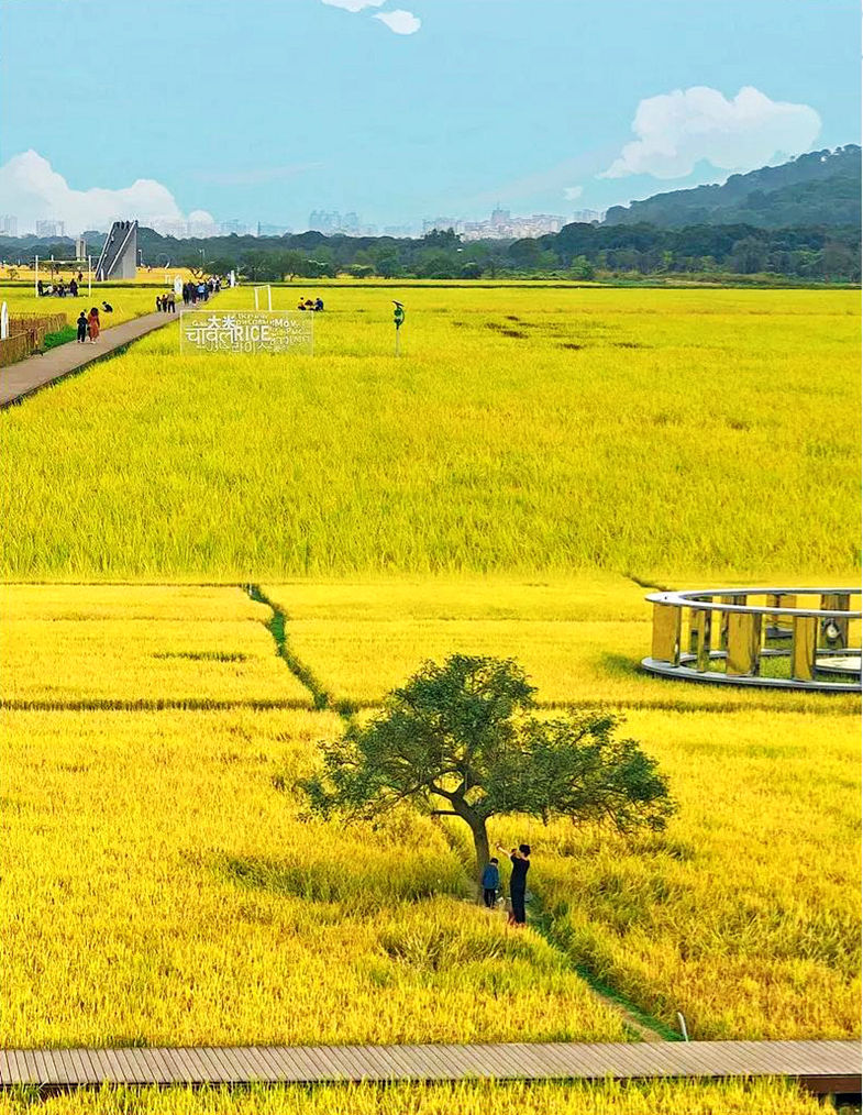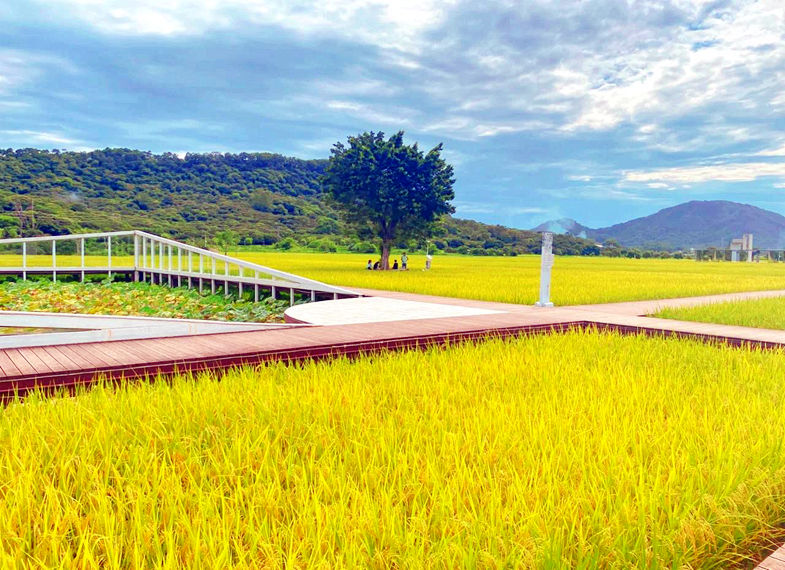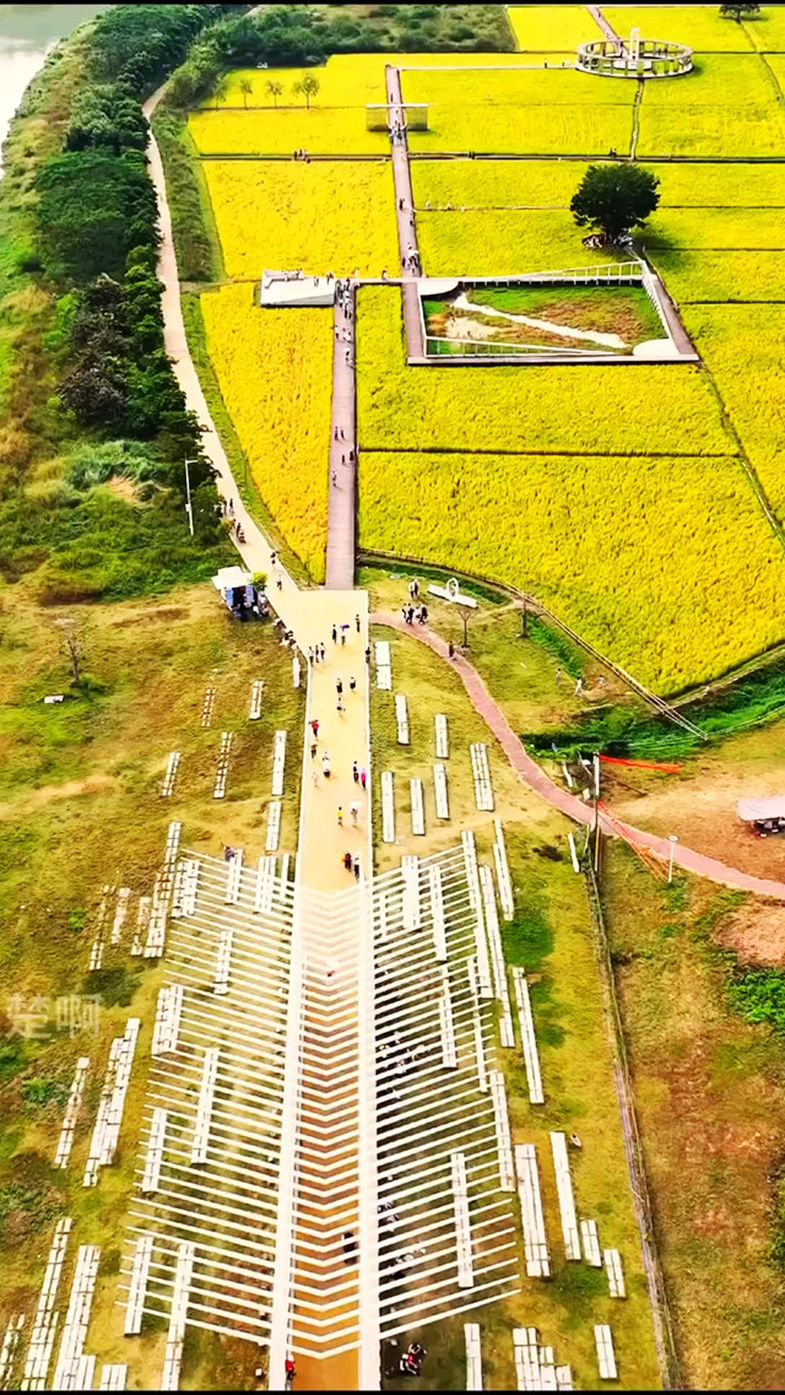 艾米稻香小镇的田园风光十分迷人,四季稻田美景各异。秋季稻谷成熟时,金黄的稻田与周围的青山绿水相映成趣,构成一幅美丽的画卷。此外,小镇内还设有“希望之翼”“节气之轮”“丰收之台”等创意艺术装置,为田园风光增添了艺术气息。