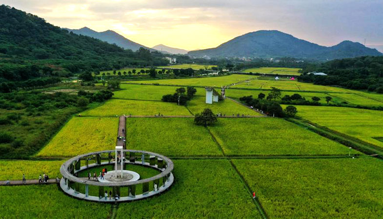 从化艾米稻香小镇位于广州市从化区街口街风云岭森林公园北侧山脚下,是从化区打造的第二批特色小镇之一。这里三面环山、一面临城,拥有1000亩连片稻田,宛如山坳里的世外桃源。小镇以“粤港澳人工智能农业科技特色小镇”为定位,融合生态水稻种植与5G数字农田技术,展示未来农业的生产新方式。