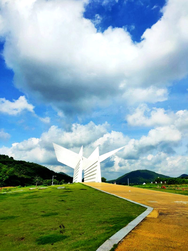 越洋:寓意一颗种子的漂洋过海,下方是一片荷花池。