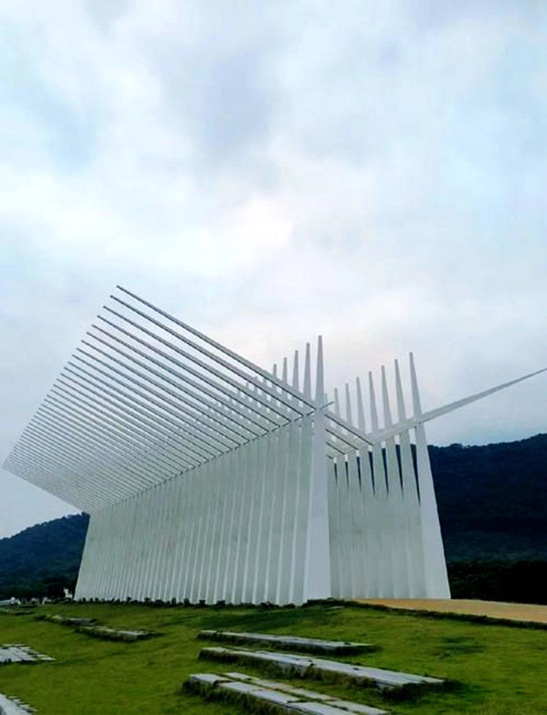 时光之门:矩形镜面和圆形拱门构成,随太阳高度变化呈现不同反射效果。