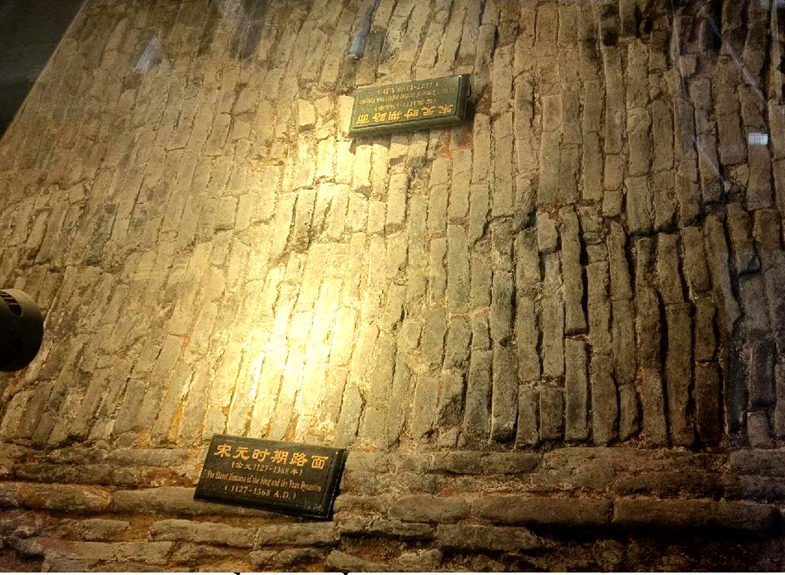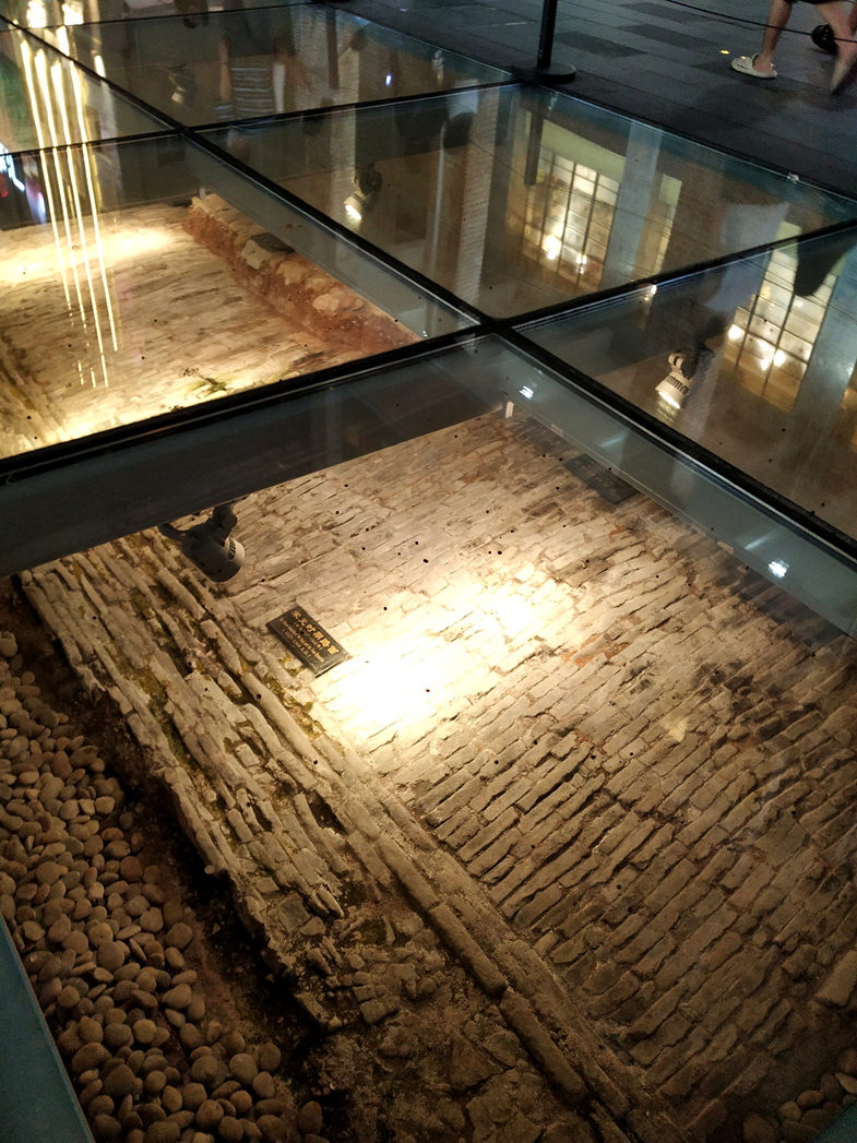 景点特色:从唐宋到近代,北京路是古代广州城的中轴线,其北起越秀山,经省财政厅延至珠江边,历经千年延用,是广州的地理和商业中心。古道遗址出土了大量砂岩石条与古城墙砖,层层叠压了从唐至民国共11层的路面,包括唐代路面、南汉路面、宋元路面、明清路面、民国路面等,其中宋代路面的垫层中出土了大量瓷片,产地涉及河北、浙江、江西、福建、广东等地,还有进口玻璃碗残片和宋代铜钱,证明当时的北京路已是海内外贸易货物的集散地。