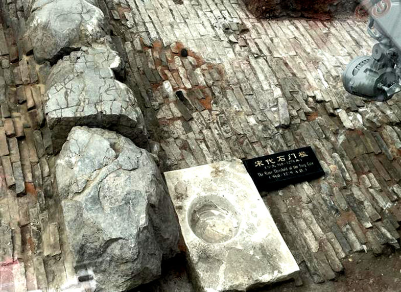 2002年7月初,北京路步行街在整饰工程路面开挖过程中,出土了大量砂岩石条与古城墙砖。经过两个多月的抢救性挖掘,掘出了自南汉以来共五朝11层的路面和宋代拱北楼基址。
