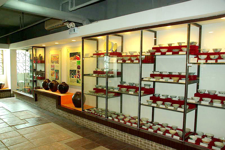 碗、箸、碜展示区:陈列花碗、鸡公碗、葵口双系青釉瓶、双凤瓶、古戏汤盅和参盅、绿釉瓶、五彩罐、明清系列、豆青系列和各时期的筷子筒等。