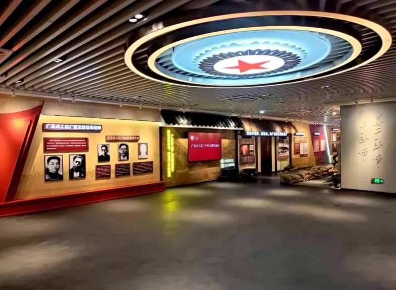 广东兵工厂红色教育基地占地面积752平方米,建筑面积2400余平方米。该基地大量采用雕塑、浮雕、AR/VR虚拟现实沉浸式体验设备等生动化的表现形式,全方位展现广东兵工厂的历史进程、工人运动内容、党支部的成立与影响、工人运动与党建事件中有关革命先辈的英雄事迹。
