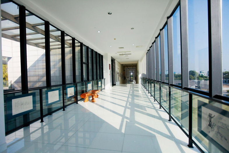 应当时亚运会及亚残会服务需要,博物馆主体建筑四层均采用无障碍通道,室外坡道连接室内白色宽敞的室内斜坡,参观者从一楼到四楼而又自上而下,按照指引可以游览到每一个展区而无需走回头路,设计线路构思巧妙,上下环绕一气呵成,设计灵感源自“艺术之美不知从哪里开始,在哪里终结”理念。
