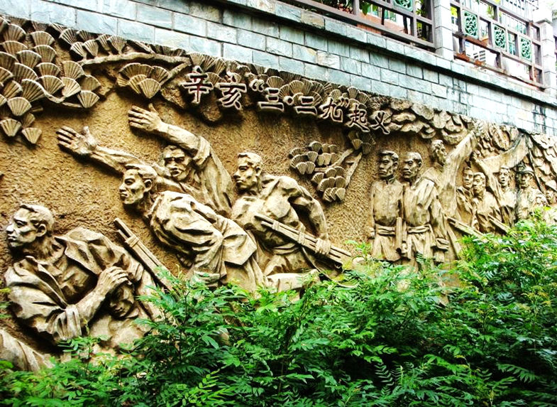 “三·二九”起义指挥部旧址纪念馆大屋内摆放着的石狮,布置有三个展厅,分别以“走进辛亥”、“碧血黄花”、“浩气长存”为主题进行展览。除此以外,还有前厅、互动多媒体室和临展厅等。