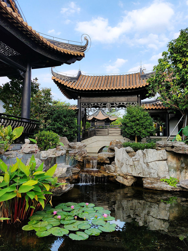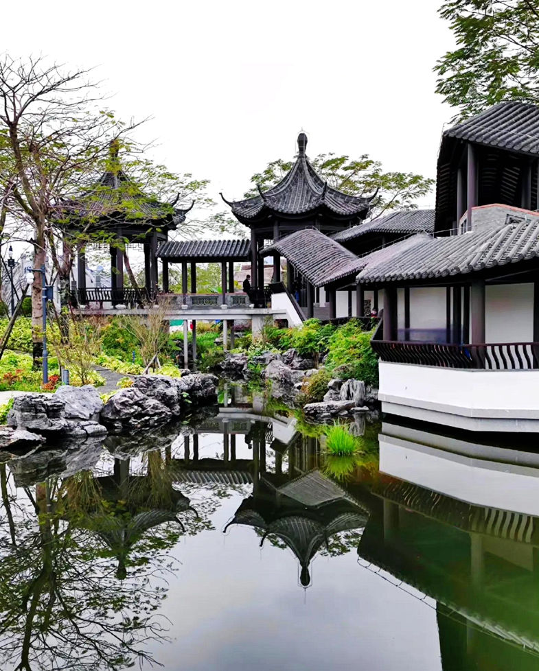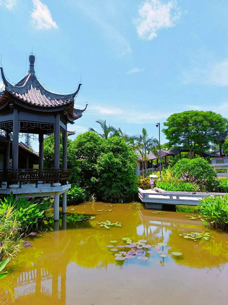 广府园建筑面积约0.21万平方米,位于园区的中间位置,承担着体现广府文化的重要角色,通过园林空间和建筑元素的传承,突出广府的文化、民俗和工艺,强调广府建筑适应地域气候、吸取西方文化精髓、兼容并蓄的风格。