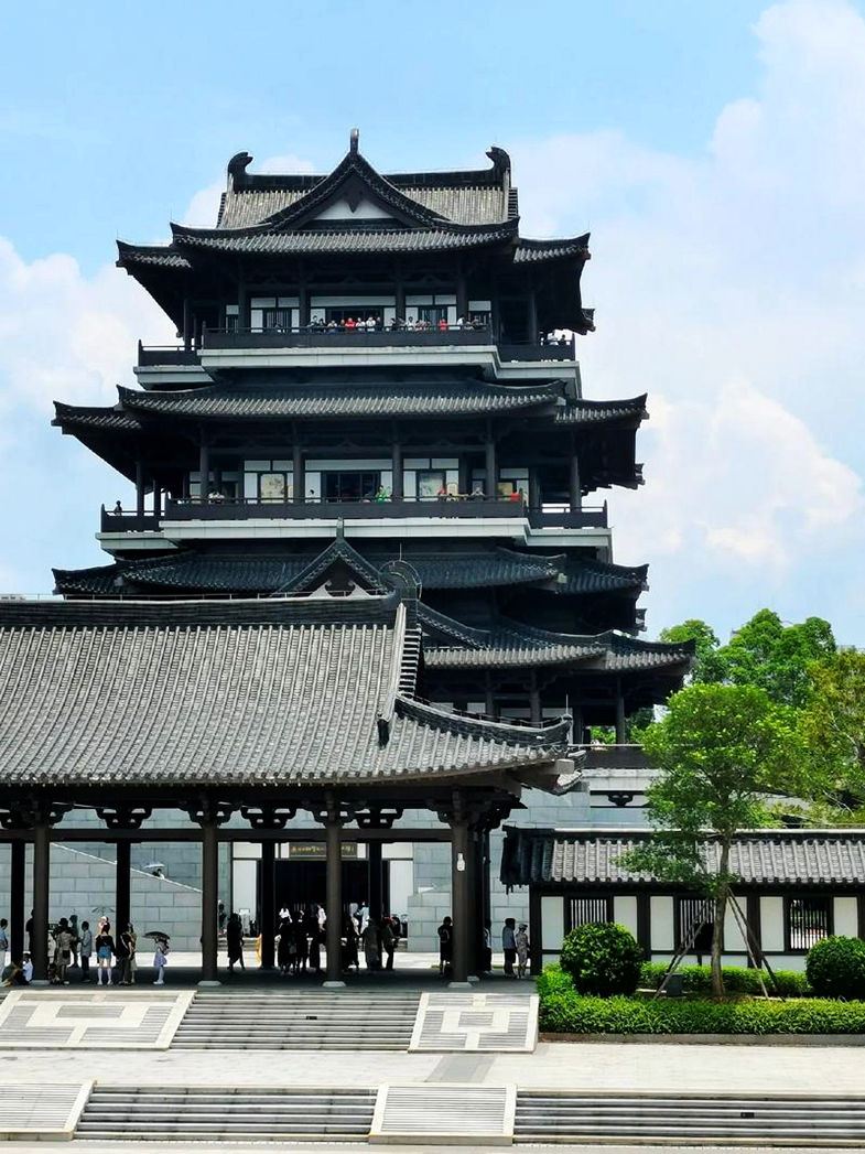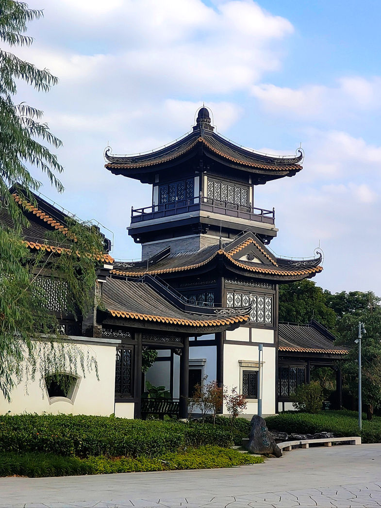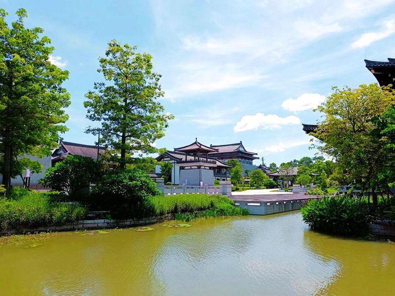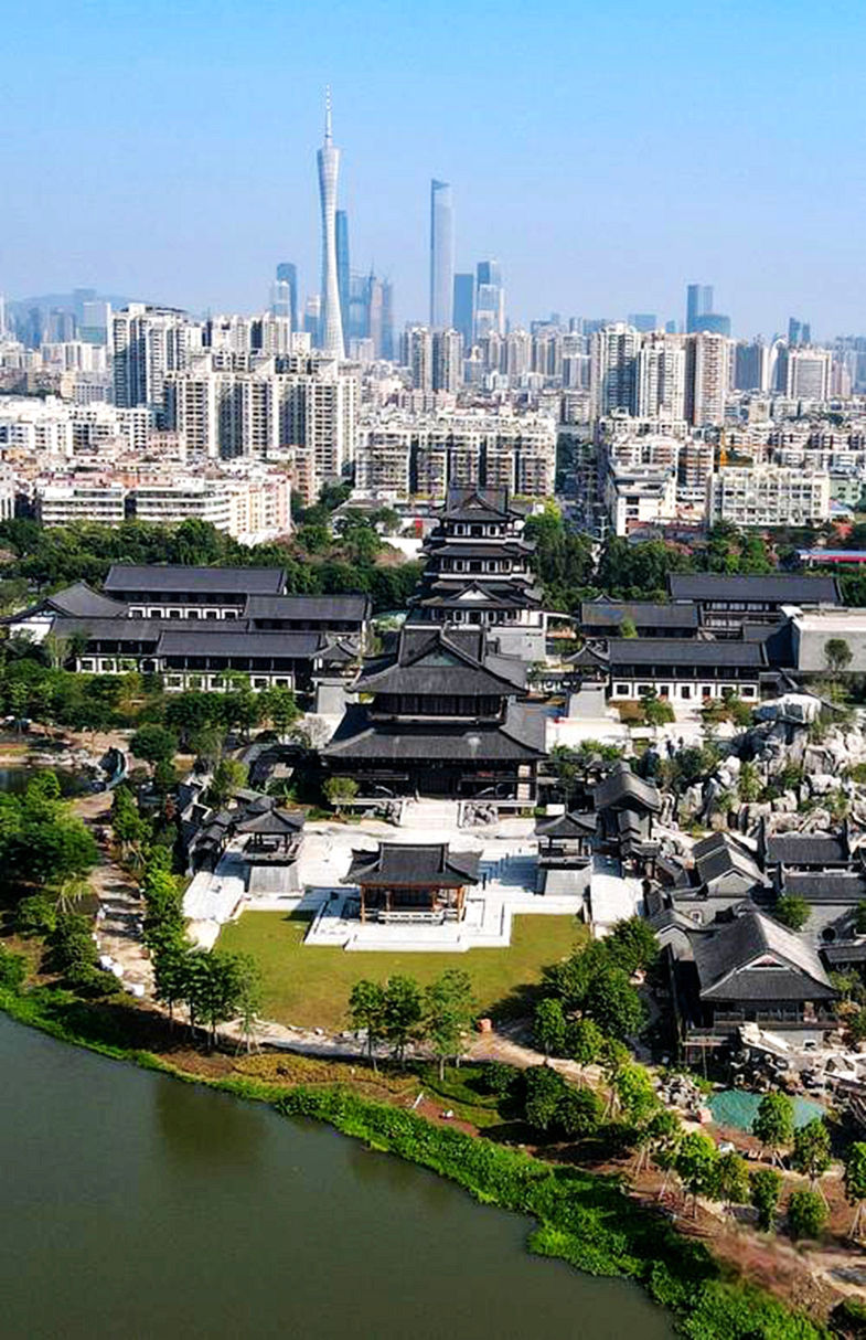 广州市文化馆新馆以“十里红云一湾水,八桥画舫十六亭”为设计主题,用传统建筑和园林空间的巧妙组合再现岭南水乡园林的佳境,包含公共文化中心、翰墨园、曲艺园、广府园、广绣园等多组主题园林建筑,以及由它们共同形成的大型园林景观,是富有岭南生态特色、文化底蕴的城市客厅。