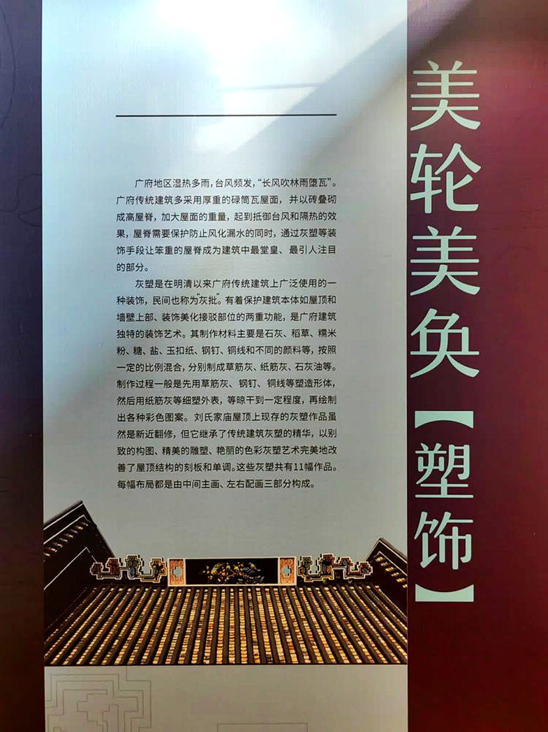 刘氏家庙坐南朝北,前后两进,是具有典型岭南庭院风格的青砖建筑。1989年,广州市政府公布刘氏家庙为市重点文物保护单位。市文化局从1996年开始对家庙进行了两次维修,整修后的家庙总面积约2000平方米。天河区从2001年开始对刘氏家庙环境进行全面整治,并辅之以围墙的整饰和绿化。