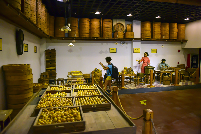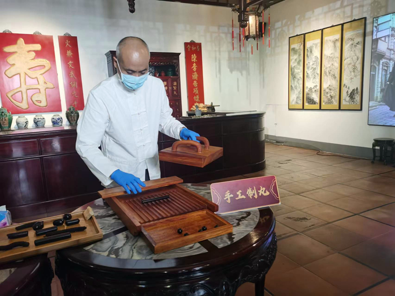 蜡壳包装工艺展厅:此展厅是陈李济独特工艺的集中展示地。煮蜡的大锅热气氤氲,溶蜡时蜡液似灵动的溪流流转不息。工匠们手法娴熟,依次进行串原子、蘸蜡、入丸、封口、剪蒂、盖印等八项精细手工操作,每一个动作行云流水、精准无误,将陈李济独有的蜡壳包装工艺的精妙之处展现得淋漓尽致,让人不禁为古老技艺的魅力所折服。