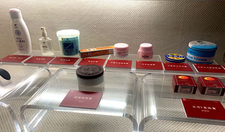 《史海回眸》:上古时期、商周至春秋战国时期、秦汉至南北朝时期、隋唐宋辽金时期、元明清时期、中华民国时期、建国后等,共展小出500余件藏品。《技术春秋》:共由六个篇幅组成。分别介绍了《化妆品技术发展阶段简述》《化妆品生产原材料及工艺简述》《化妆品现代分类》等,结合原始材料、近代化妆品、现代化妆品实物,展示化妆品技术发展的历程。