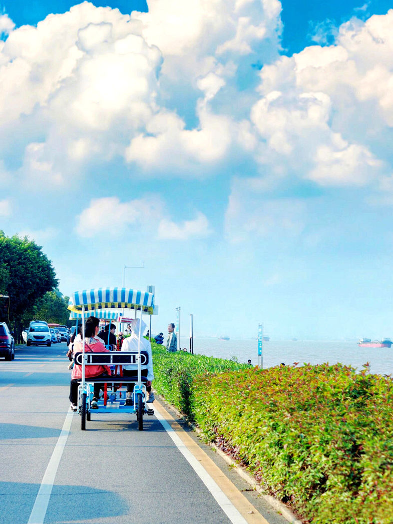 想看尽海鸥岛美丽风光的最好方式莫过于骑行。岛上除了一条环岛的绿道外,还有一条13公里长的公路由北往南贯穿全岛。路上人不多,平坦宽阔,很适合骑行。骑着车感受海风的吹拂,狮子洋上一艘艘巨轮来来往往,沿途阳光穿透绿树,惬意美好。
