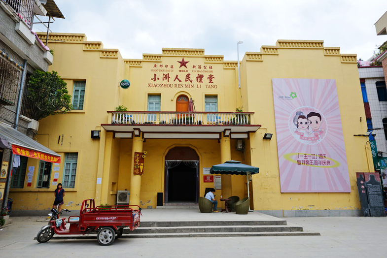 小洲人民礼堂位于广东省广州市海珠区华洲街小洲村拱北大街20号。建于1959年,当时正是“大跃进”时期,全村男女老少总动员,一砖一瓦把礼堂建设起来,是海珠区为数不多的苏式礼堂,见证小洲村工业发展历史。