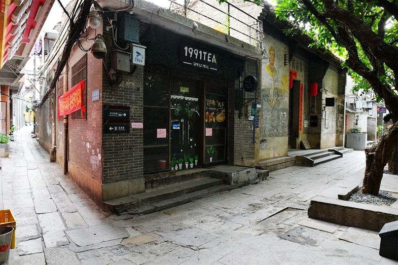 北部组团建筑群以中部的红砂岩小石岗(当地称为“华台”)为中心,依地势向四周大致呈放射状分布,分成南向、西南向、西向、北向、东向五大块,类似八卦图。以红砂岩石岗为起点的街道,一直向外顺势延伸,与四周的河涌大致垂直。