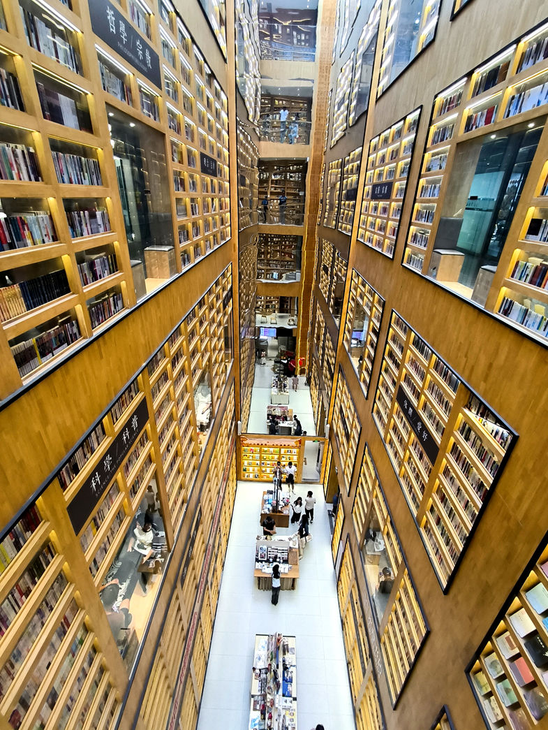 米谷书店:7层楼高的垂直书墙,融合阅读、展览与咖啡空间,被称为“网红书店天花板”。